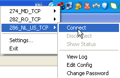5. На появившейся в трее иконке кликаем правой кнопкой мышки, выбираем нужную нам подписку и выбираем "Connect"